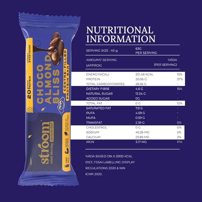 Stroom Choco Almond Protein Bliss Bar – 45 Gm