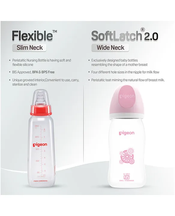 Pigeon Softlatch 2.0 PP Pink Feeding Bottle 6+months (80591) - 240 Ml quantity