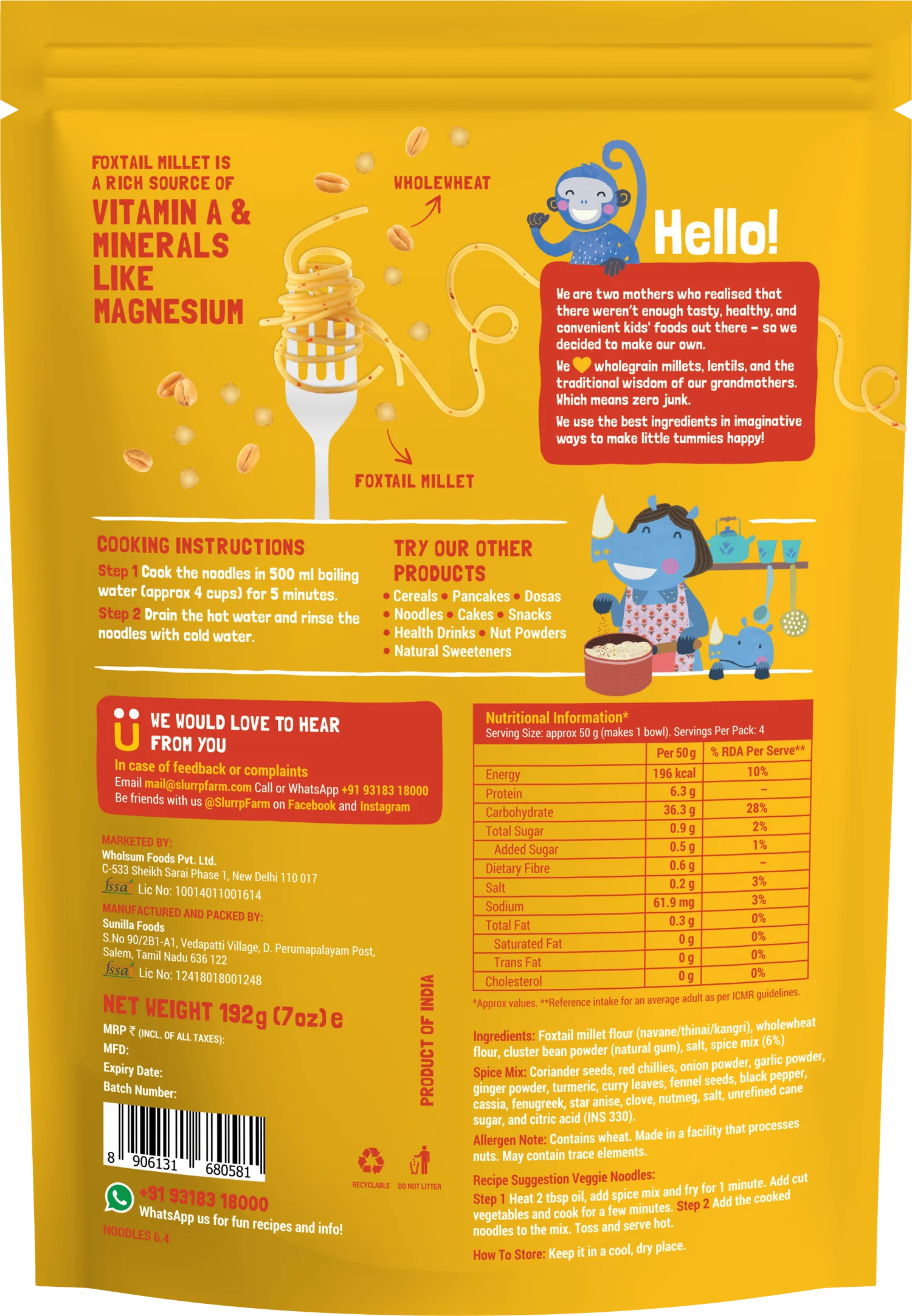 Slurrp Farm Foxtail Millet Noodles – 192 Gm